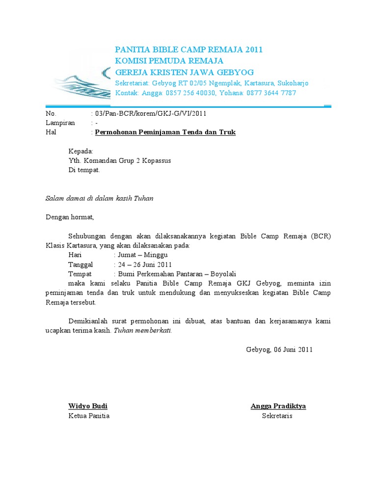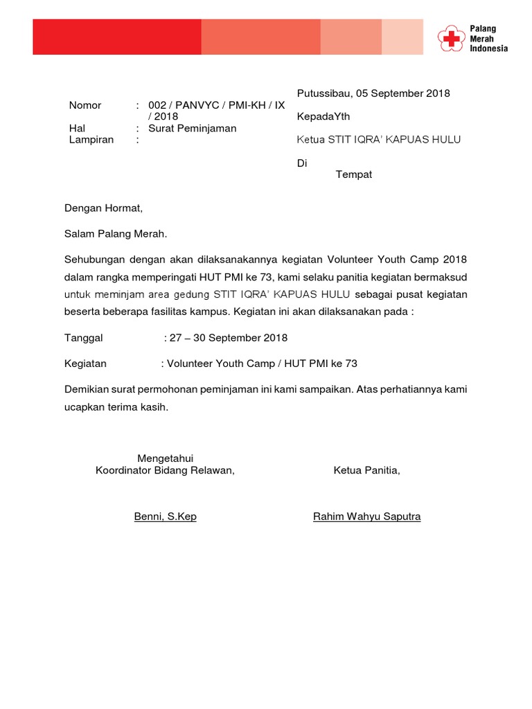 Doc Contoh Surat Peminjaman Tempat Dan Barang Ihtiandiko Wicaksono Academia Edu